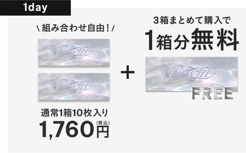 デューリット【回らない水光】シリコーン ハイドロゲル/シリコン(Dewlit silicone hydrogel)|度あり・度なしカラコン ワンデー|14.5mm|へウォン