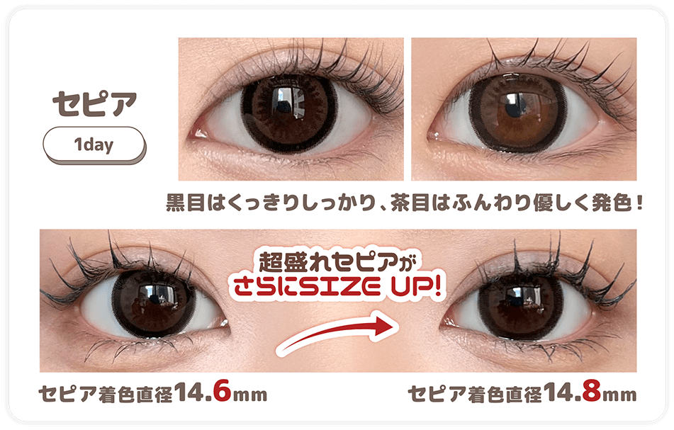 『HONEY DROPS(ハニードロップス)』DIA15.0mmシリーズ! DIA15.0mmの国内最大級承認カラコン!!着色直径は14.6mm☆ 超盛れるのに瞳に馴染む♪ 《セピア【着色直径14.8mm】》【NEW】 大人気『セピア』がサイズアップ! 着色直径14.8mmでしかもシリコーンハイドロゲル素材に!! 瞳に優しくて、着け心地も盛れ感も理論値です♡ 《ホライゾン》【NEW】 ちゅるちゅるキラキラ超盛れる太フチのブルーグレー♡ 《チョコシェイク》 ミルクティーグレージュ×ベージュフチでうるちゅる色素薄い瞳に♡ 15mmでしっかり盛れつつ透けふわなデザインの最強バランス!! 《セピア》 瞳を包み込むリング状の黒フチが艶のあるくりっと瞳を演出。 《セピアグレージュ》 艶やかな大人っぽ太フチグレージュ グレーになりすぎないほろ甘ベージュだからイエベもブルべも使いやすい発色に仕上げました♡ 《セピアブルー》 透き通る青空のようなシアンブルー うるみ感たっぷりの鮮やかブルーで憧れのドーリーフェイスに一気に近づく♡ 《セピアピンク》 女子の欲望がたくさん詰まった依存度高めの白みピンク♡ 太く濃い太フチに高発色の白みピンクを合わせてちゅるんと可愛い!! 《うるつやブラウン》 ぼかしたフチに溶け込むつやっつやのナチュ盛りブラウン。うるっと可愛く自然な瞳で視線を引き寄せる。 《うるつやベージュ》 ツヤツヤのグレイッシュなベージュで垢抜けた目元に。ブラウンのフチで派手さを抑えて究極の美人顔に。 《うるつやピンク》 ふんわりぼかしフチと白浮きしないツヤのある色っぽピンク。大人可愛いうるっとした瞳に。 《チョコモカ》 黒フチ&オレンジブラウンの絶妙な掛け合わせが立体感のあるドーリーeyeに。 《カフェミスト》 余裕でプリ越え!盛れすぎてやばかった♡くっきり黒フチとクリーミーなグレーの立体感デザイン。間違いなくギャルなんだけど、大人っぽいコーラル系グレーがまじで可愛い♡体感サイズは16mmくらい! 《メロウショコラ》【デザインリニューアル】 ヌケ感と透明感をプラスしてくれるDIA15.0mmの常識を覆すキレイめナチュラルデザイン。 《メロウピンク》【デザインリニューアル】 自然で鮮やかなピンクでフェミニンだけどオトナっぽい印象に。うるっとツヤのある発色で可愛さを引き立てるデザイン。 《ももブルージュ》 ふわっと優しくぼかしたフチに、くすませたブルーグレーが大人ハーフ瞳に。ほんのりピンクを忍ばせて甘さもプラス。 《ベビーブラウン》 着けたら、お顔がマイナス10歳!韓国アイドル系のうるちゅるおめめになれる 色素薄い系レンズです!ベージュ寄りじゅわーっと溶け込む明るいブラウンと、ぼかしの効いた空気のように軽いちゅるんフチが可愛すぎる! 《ベビーベージュ》 大人っぽいようでどこか幼い・・・不思議な発色♡グレージュ寄りのメインカラーにベビーブラウン同様にぼかしの効いたちゅるんフチが瞳をちょい甘に♡たぶん体感は着色直径13.9mm付近ですっごく自然!透明感も炸裂UP! 《すけつやジェリー》 あえて透かして涙目のような透明感を魅せるベージュブラウン。うるっときらめく光のヴェールが瞳を包みます。 《ピコブラウン》【デザインリニューアル】 淡く盛れるブラウンカラー。3トーンの小さめドットで"ナチュ盛り"デザイン。 モデル:眠岸ぷりん