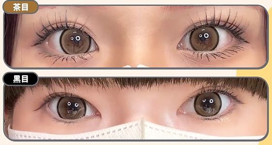 メロブラウンより白目が透ける! ファビュラスは黒目だと内側が暗めに発色して、グレーの範囲が狭く感じる。 黒目が大きい人ほど暗めに見えるかも!