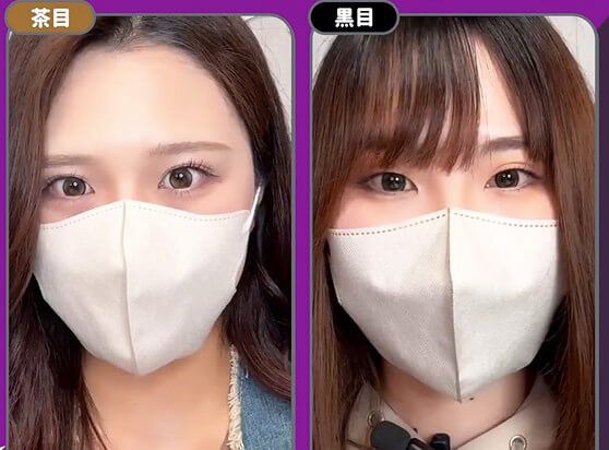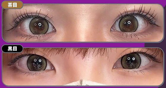 裸眼の色で少し見え方は変わりますが、黒目も茶目もしっかりオリーブに発色♪
