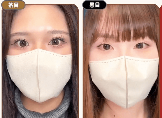 黒目だとゾッコンブラウンはふわっと柄で、うるじゅわっとした印象に。 涙目ブラウンはちゅるんとしたツヤ感があって、 自然な茶目っぽくナチュラルにトーンアップしてくれます◎
