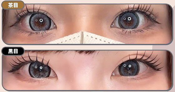 黒目だとフチは馴染んでワントーンっぽい印象です。