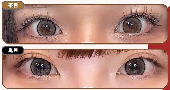 シュガーパールはグレーのツヤが際立ってクールに、 ブリュレパールはブラウン×ベージュで色素薄い瞳になります♡ 黒目はシュガーパールのほうがぽわっと柄が際立って、つやキラ感が伝わりやすい!