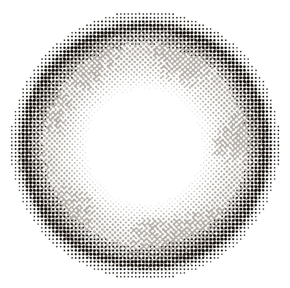 瞳に馴染みつつ、しっかりグレーが発色してます! 茶目もマンスリーのほうが柄が際立っていて、ワンデーは白み控えめのねずみ色っぽい発色に♪ 体感着色直径は13.5~6mmくらい。